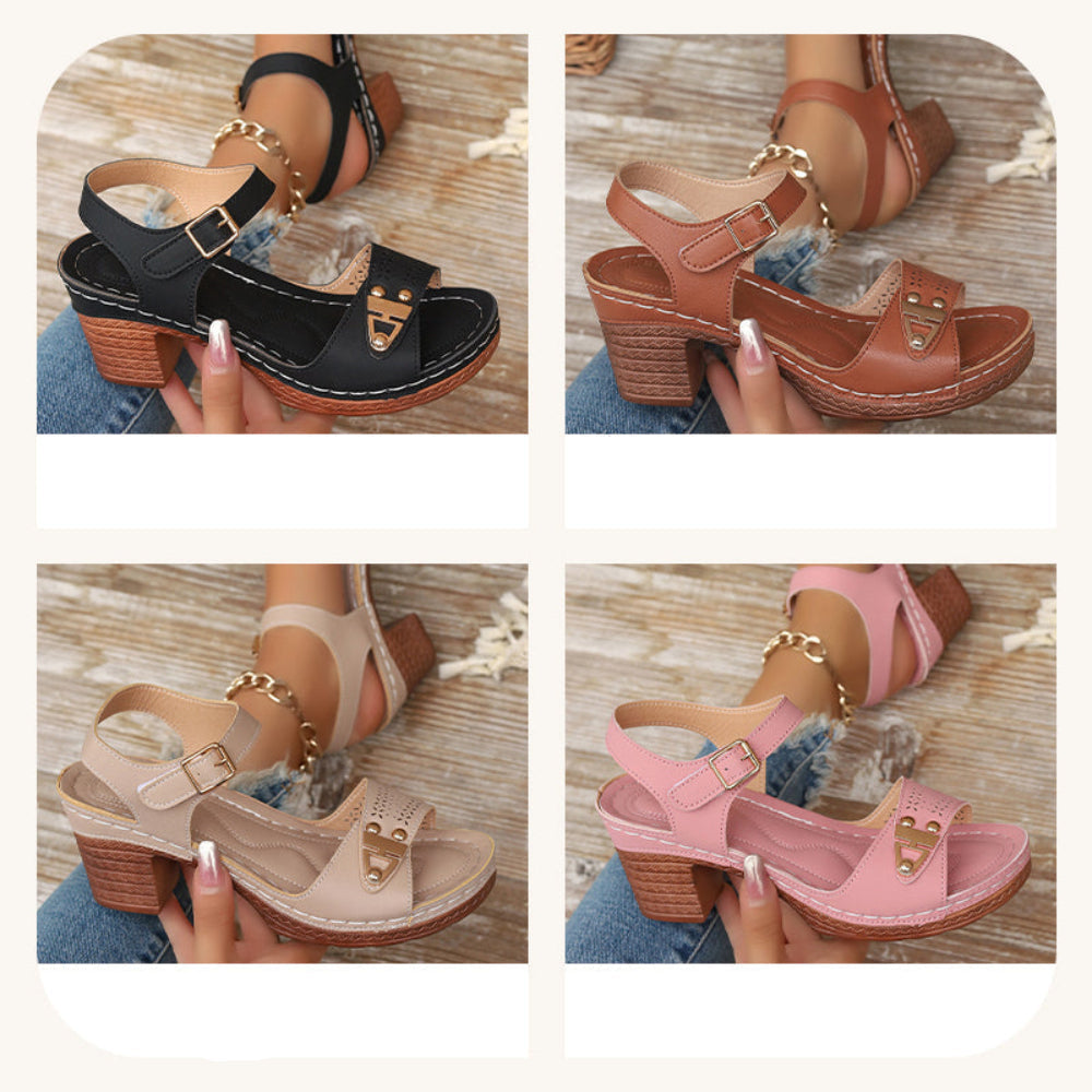 ClassicWom™ combineert een elegante uitstraling met doordacht comfort. Deze damessandaal met blokhak (block heel) is perfect voor vrouwen die stijl en stevigheid willen in één schoen. Dankzij de brede hak loop je stabiel en pijnvrij, terwijl de zachte binnenzool je de hele dag een aangenaam draaggevoel geeft.