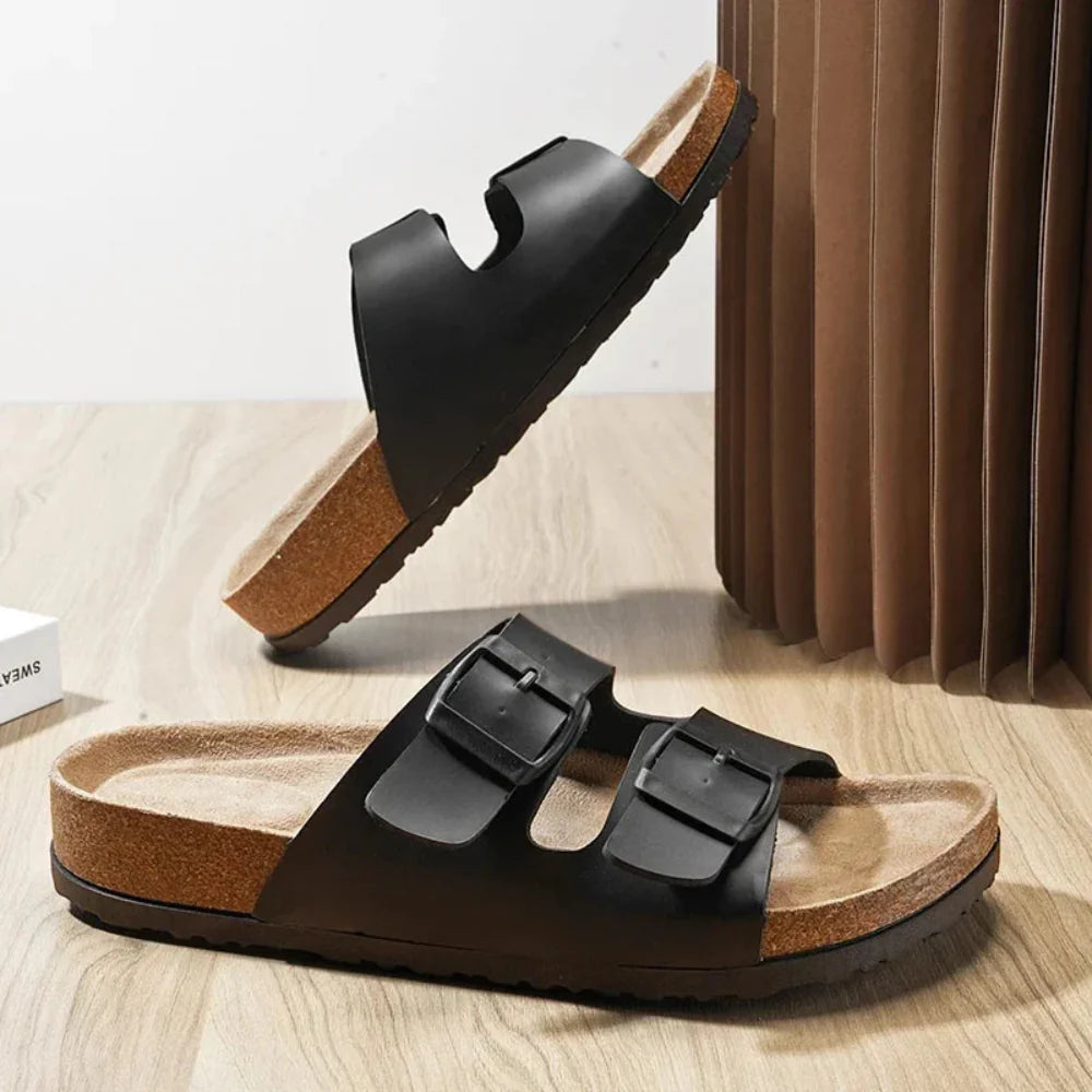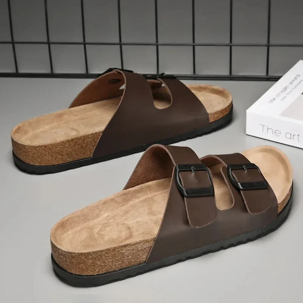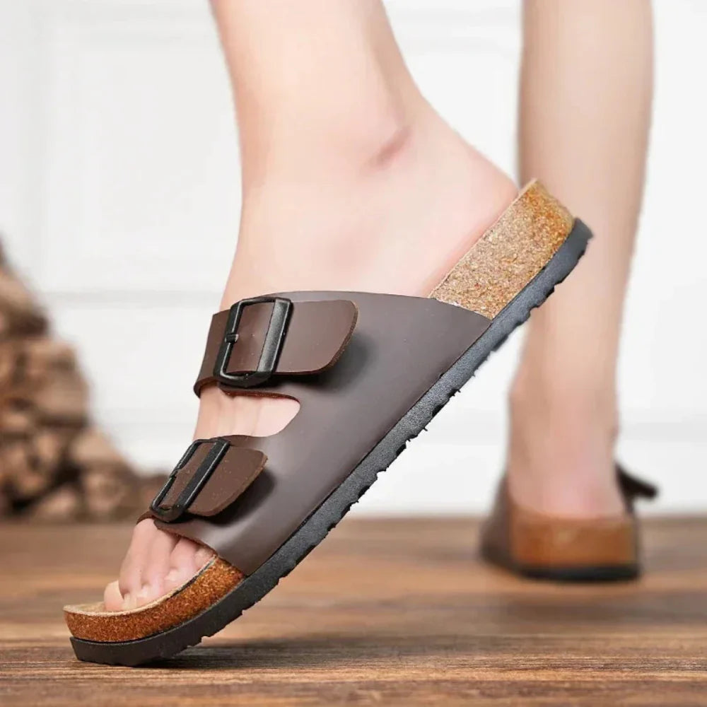 CorkStep™ is jouw ideale zomersandaal – klassiek, comfortabel en gemaakt voor dagelijks gebruik. De leren bandjes met dubbele gespsluiting zorgen voor een verstelbare en stevige pasvorm, terwijl het zachte kurkvoetbed zich vormt naar je voet en ondersteuning biedt van ochtend tot avond. Perfect voor vakanties, wandelingen of gewoon ontspannen in de zon.