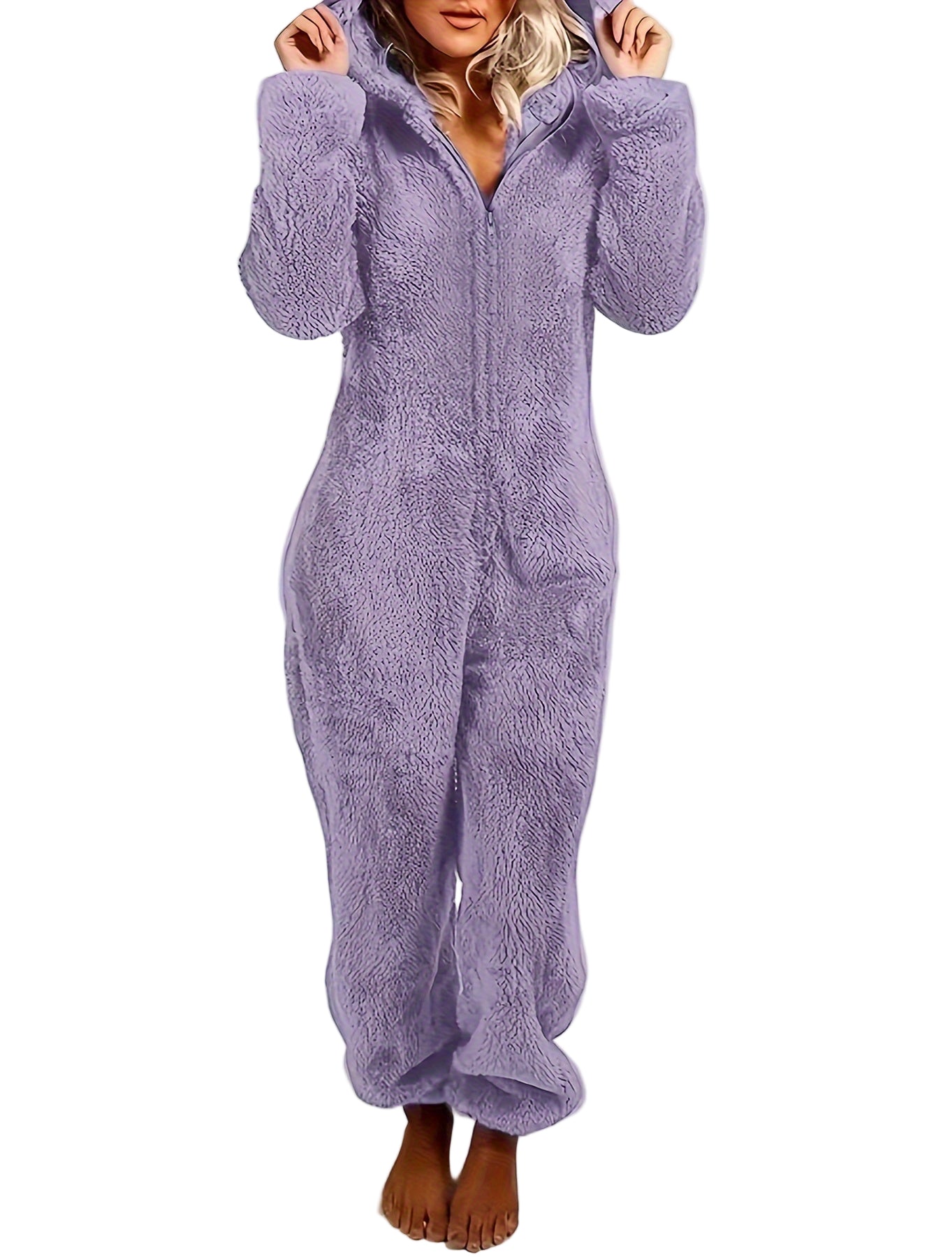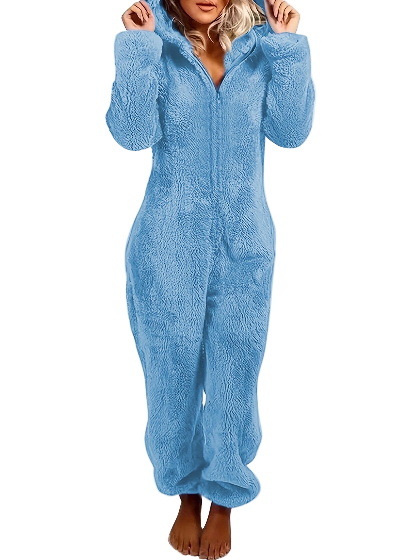 Zodra je deze onesie aantrekt, voel je het verschil: zachtheid, warmte en ultiem comfort. Perfect voor koude herfstavonden en winterse dagen waarop je niets liever wilt dan relaxen. Met capuchon, lange mouwen en een handige ritssluiting combineert deze fleece jumpsuit stijl en gezelligheid in één outfit – ideaal als pyjama of als loungewear.
