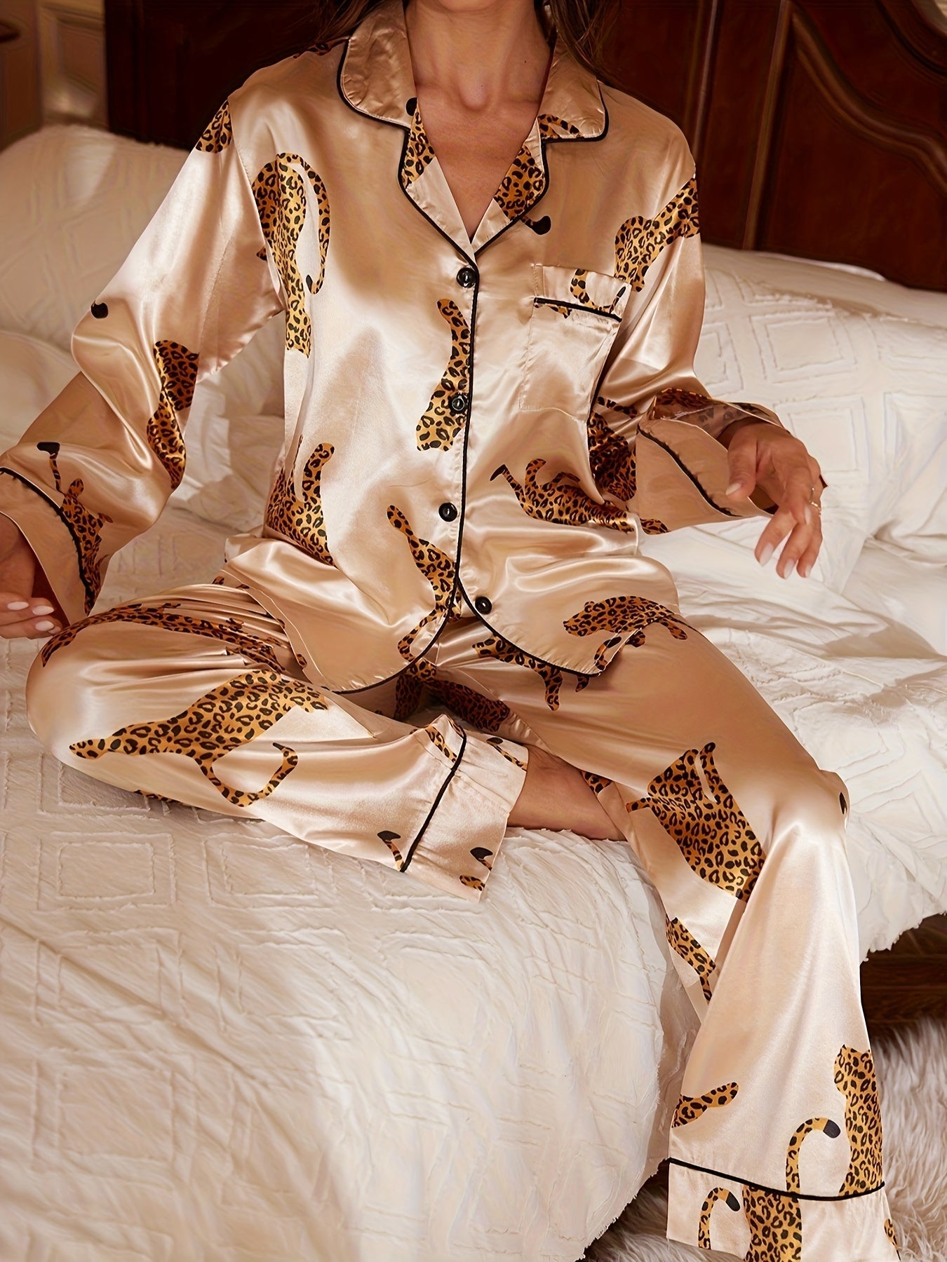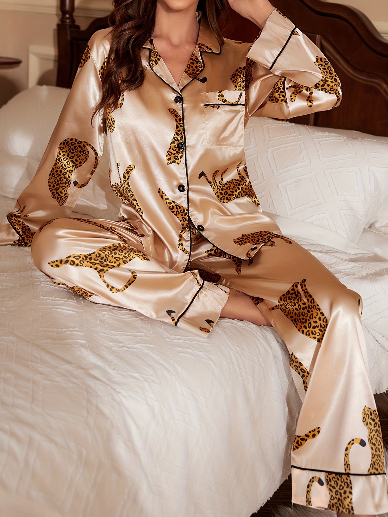 Dames pyjama set | Satijnen pyjama met luipaardprint