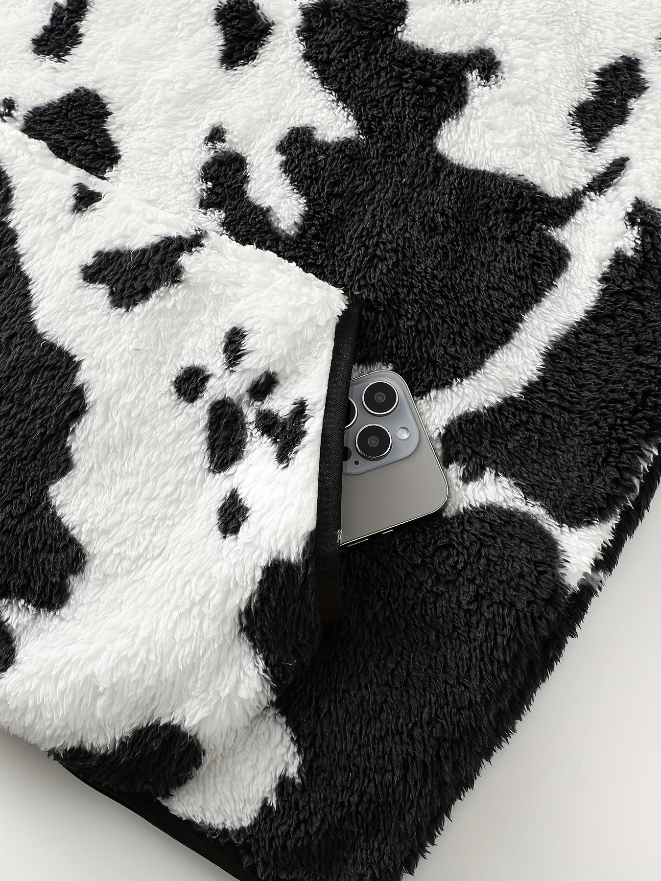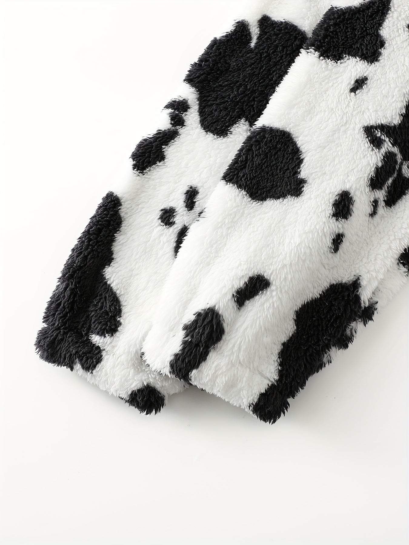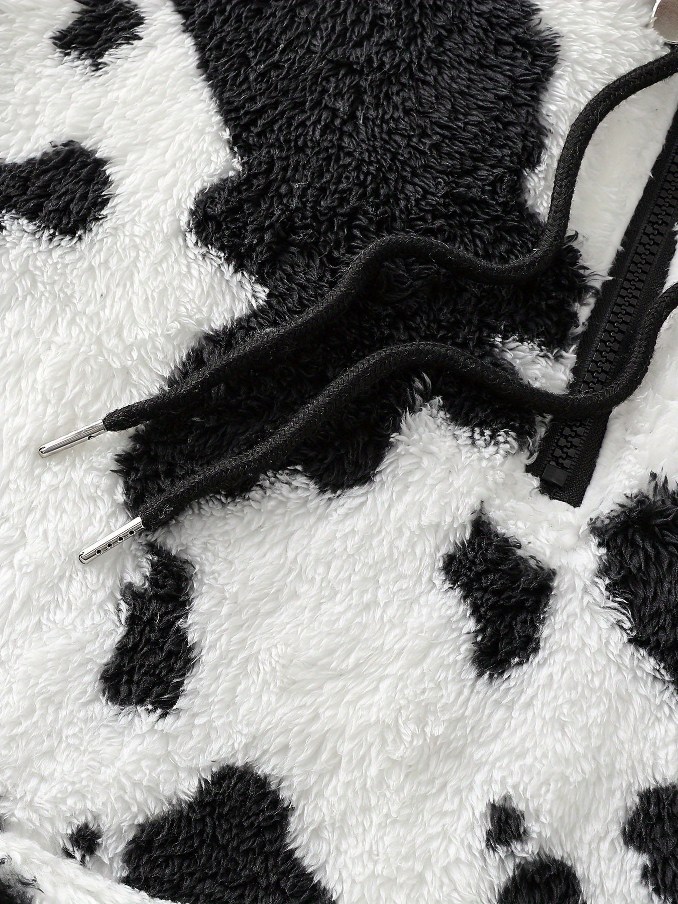 Dames zachte fleece hoodie met koeienprint & capuchon
