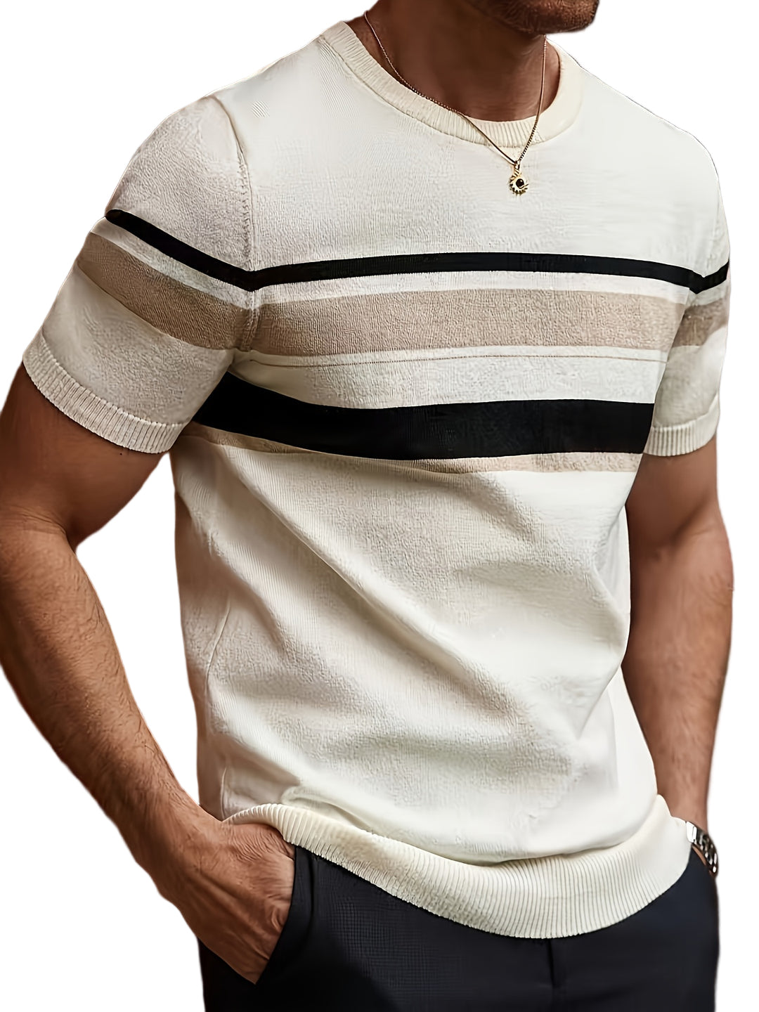 Op zoek naar een comfortabel shirt dat er net zo goed uitziet als het aanvoelt? Het Dwayn gebreide shirt combineert een luchtige pasvorm met moderne strepen, perfect voor ontspannen dagen en zonnige uitjes. Gemaakt van ademende viscose met een lichte stretch, zodat jij je de hele dag fris én stijlvol voelt.
