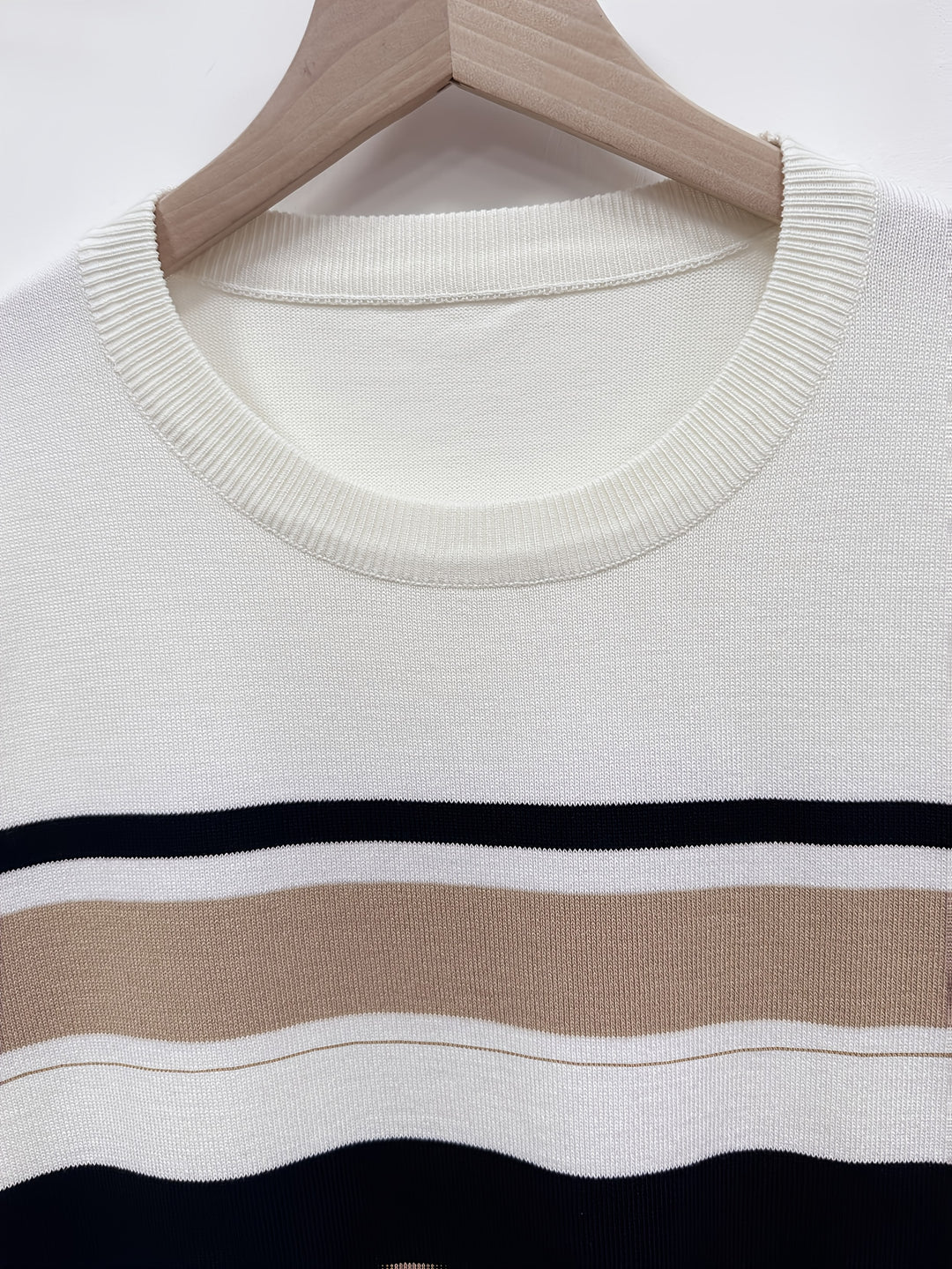 ✅ Stijlvol casual ontwerp: De subtiele ronde hals en het gestreepte patroon geven een moderne, moeiteloze uitstraling.