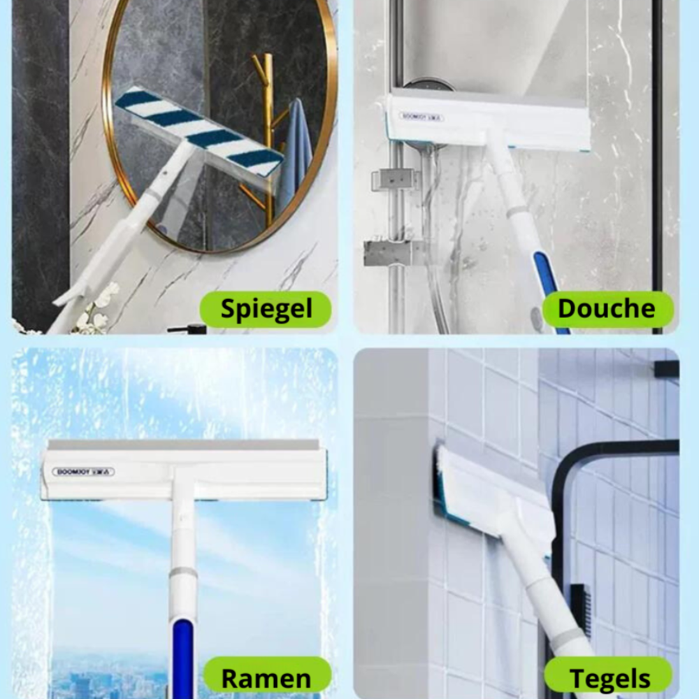 Geen ladder meer nodig! Met de uitschuifbare steel van 130 cm bereik je ook hoge ramen, doucheschermen of glazen deuren zonder jezelf te overstrekken. Veilig, comfortabel en zonder geklauter: gewoon vanaf de grond een helder resultaat.