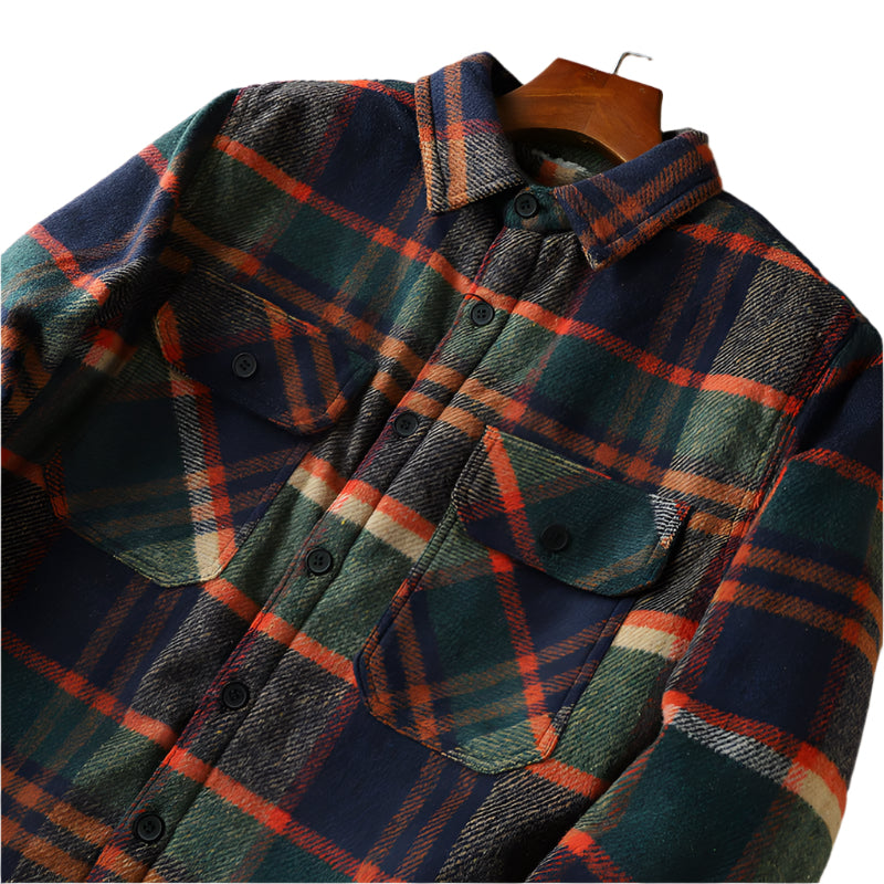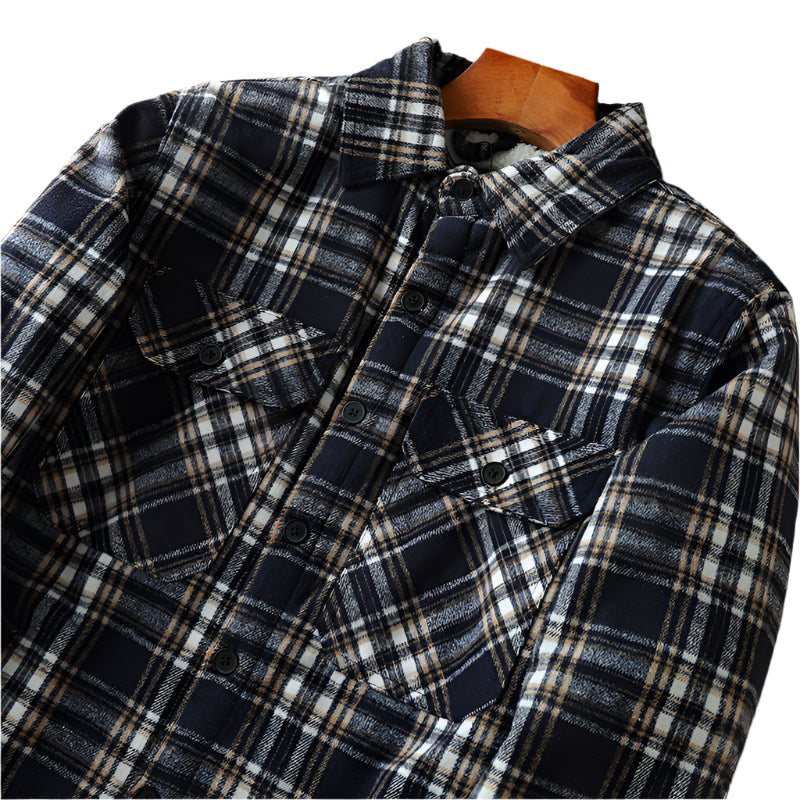 ✅ Stoere flanellen buitenkant: De klassieke geruite flannel zorgt niet alleen voor een robuuste uitstraling, maar is ook gemaakt van een warme wolmix die wind tegenhoudt en comfortabel aanvoelt.