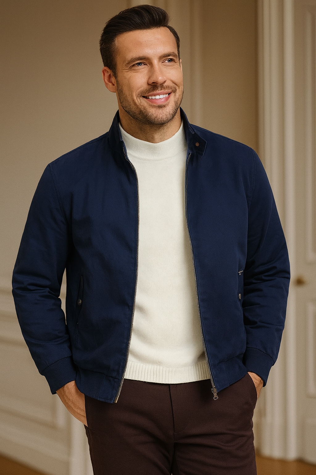 Deze klassieke heren jas is de perfecte keuze voor de overgang tussen seizoenen.