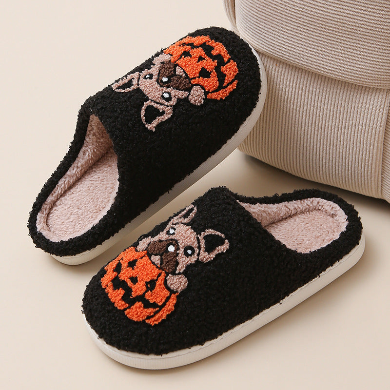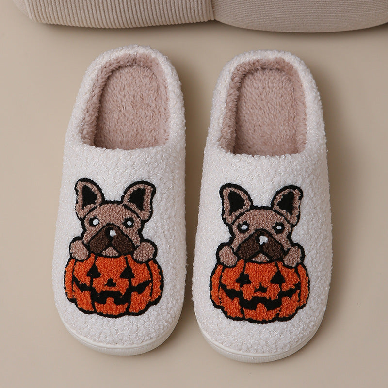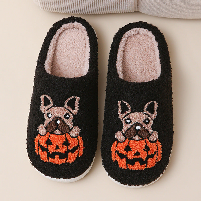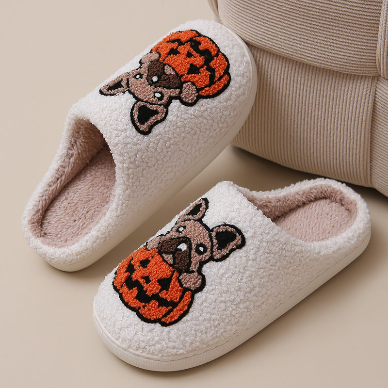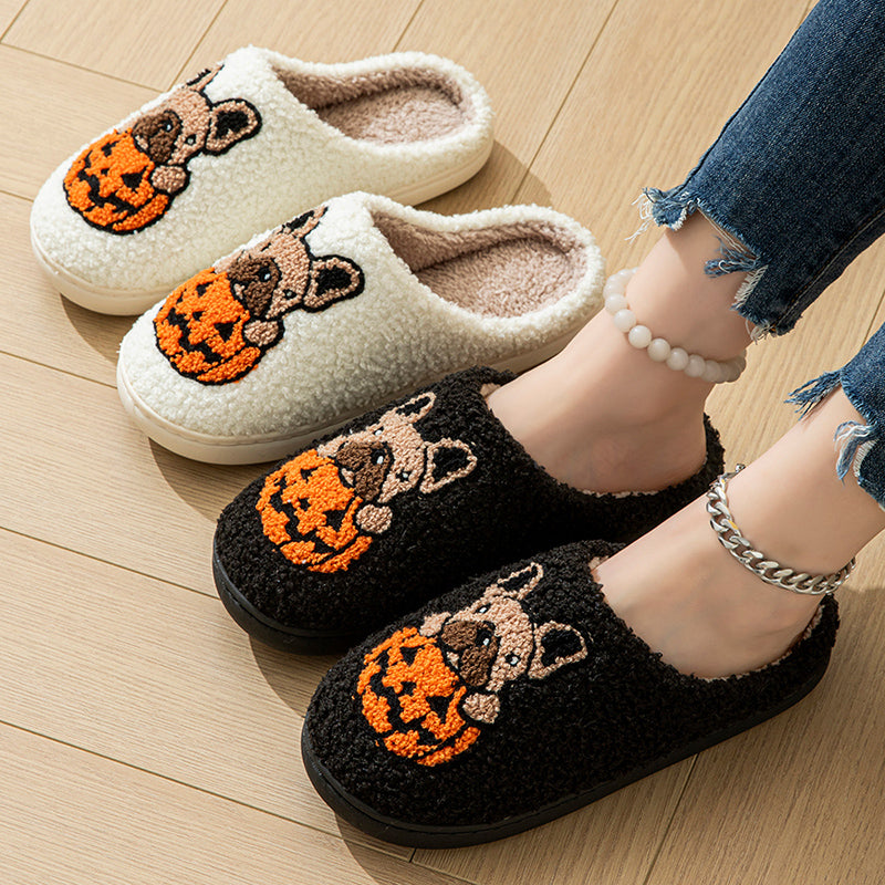 Pumpkin Pup Pantoffels | Warme dames sloffen met hond en pompoenprint