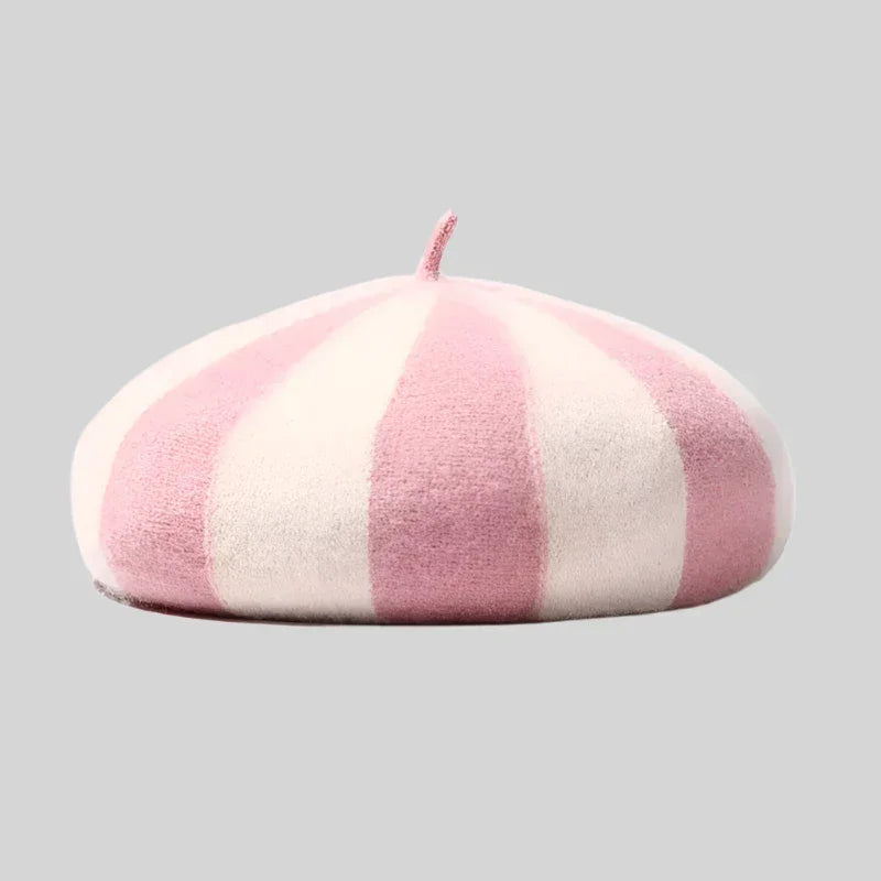 ✅ Gestreept patroon met karakter: De klassieke strepen geven deze baret een opvallende maar toch elegante uitstraling. Perfect voor wie van subtiele flair houdt.