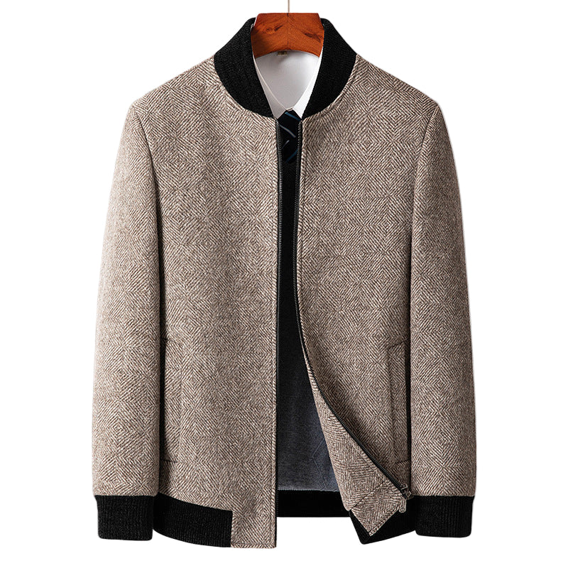 WeaveGuard | Woljas met herringbone patroon en ribkraag